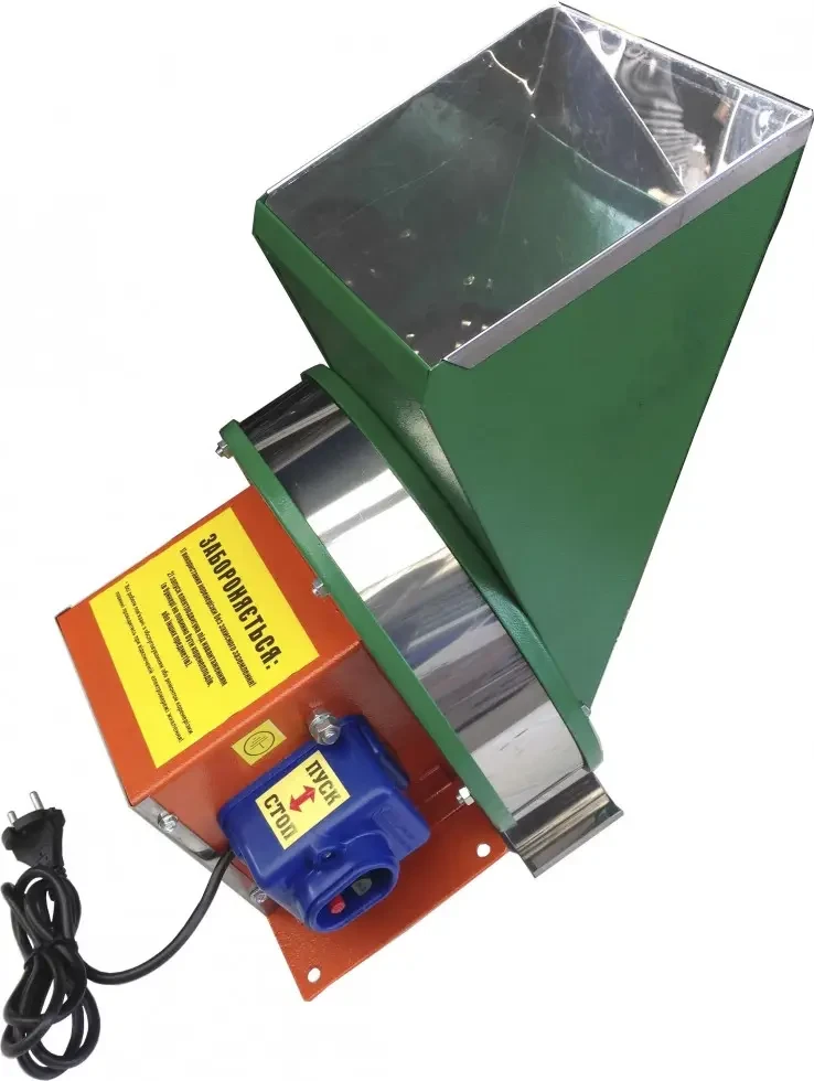 Корпус цього кормоподрібнювача виготовлено з високоякісної сталі з порошковим забарвленням і гальванічним покриттям усіх деталей. У комплект входить ручка-колесо і шків, що дає змогу використовувати його як у ручному режимі, так і спільно з електродвигуном (за наявності такого). Вал має два підшипники, що забезпечує його плавну роботу і підвищену зносостійкість.